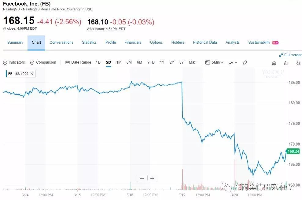 周一Facebook為首的四大科技股“FANG”跌3.3%,市值抹去超1000億美元。Facebook成為表現(xiàn)最差的標普成分股,盤中跌超8%,為近四年來最大跌幅。收跌6.77%,報172.56美元,創(chuàng)2月8日以來新低,并在一年多來首次收于200日均線下方。